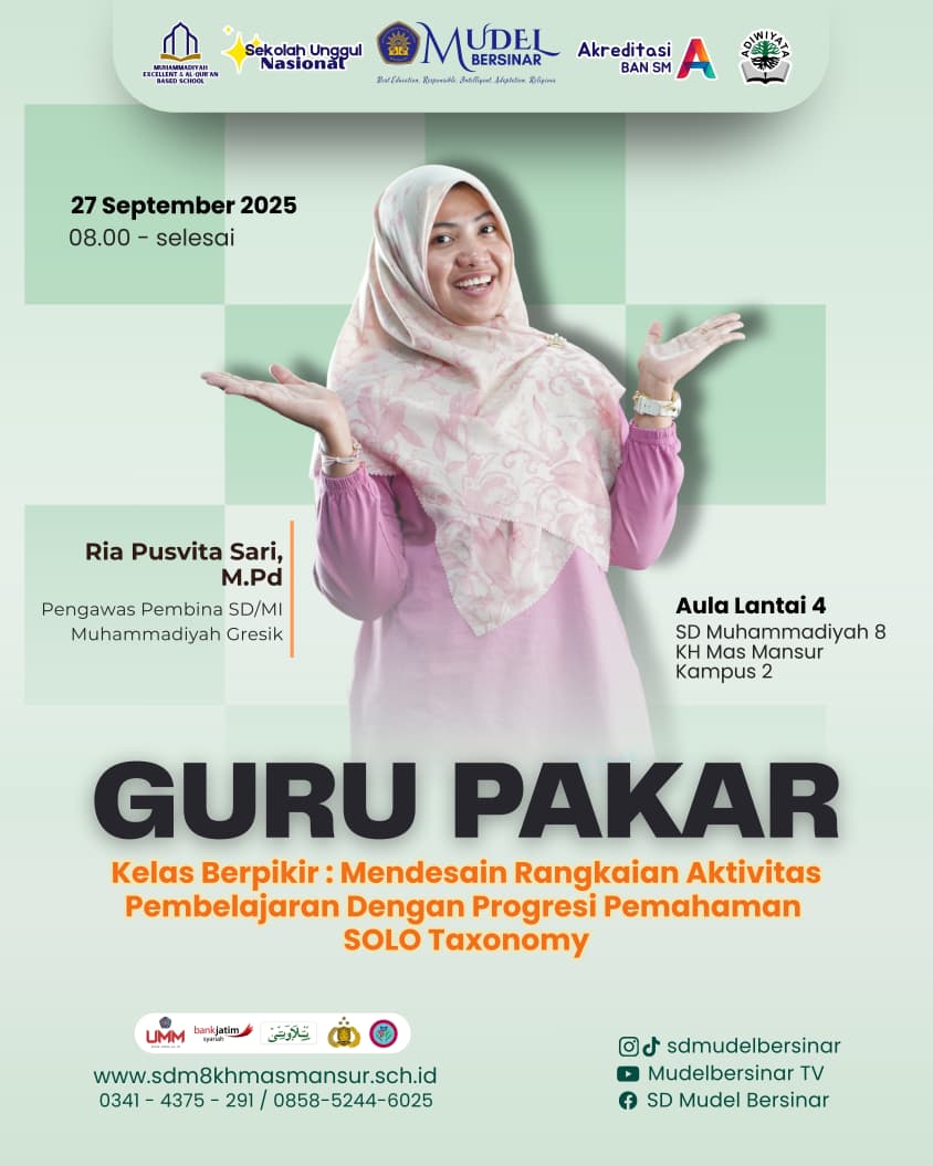 SD Muhammadiyah 8 KH Mas Mansur (SD MUDEL BERSINAR) kembali menggelar kegiatan Guru Pakar, sebuah program rutin yang menja...