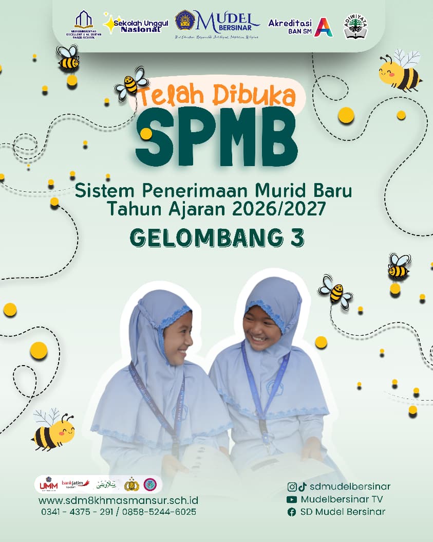 Saatnya putra-putri terbaik bergabung bersama SD Mudel Bersinar 🐝 Sekolah unggul dengan lingkungan belajar yang nyaman, berprestasi, dan berkarakter Islami. Mari wujudkan masa depan cerah melalui pendidikan berkualitas di Tahun Ajaran 2026/2027 📚🌟